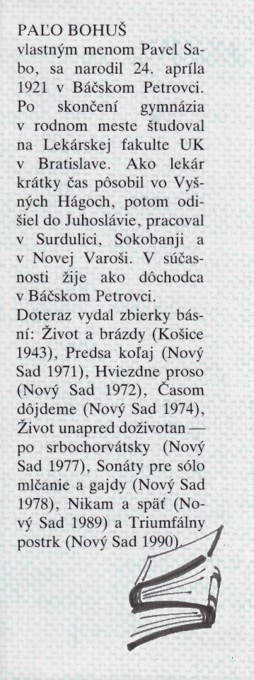 | Anotácia | básnická zbierka autora (vlastným menom Pavel Sabo); prvé vydanie |