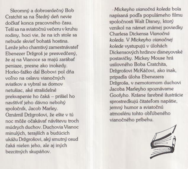 | Anotácia | Napísané na námet rozprávky Vianočná koleda od Charlesa Dickensa, podľa filmu Walta Disneyho literárne spracoval Jim Razzi, ilustroval Phil Wilson; prvé slovenské vydanie |