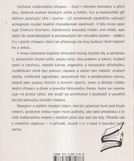 Pro muže od dvanácti let. Výchova indiánského chlapce – život v těsném kontaktu s přírodou, důvěrná znalost zvířat a rostlin, hry a naslouchání příběhům posilující tělo i ducha – již mnohokrát osvědčila udivující schopnost rozvíjet kladné charakterové vlastnosti. V této knize popisuje Ch. Eastman, čistokrevný siouxský indián, své mládí, spadající do sedmdesátých a osmdesátých let 19. století – vědění, hry i pocity chlapce, který se připravuje na svůj budoucí život bojovníka a zvěda.