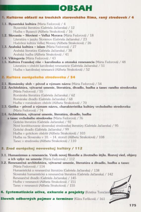 Učebnica Teória a dejiny kultúry pre 2. ročník stredných pedagogických škôl, pedagogických a sociálnych akadémií a pedagogických a kultúrnych akademií je určená pre študentov, ktorí sa pripravujú na kariéru v oblasti pedagogiky. Učebnica poskytuje komplexný prehľad dejín kultúry, pričom zohľadňuje vplyvy rôznych historických, spoločenských a politických faktorov na vývoj kultúrnych javov v Európe a na svete. Dôraz sa kladie na rozvoj schopnosti analyzovať kultúrne procesy a ich vzťah k umeniu, literatúre, filozofii, hudbe a architektúre ; Autori publikácie: M. Fedorová, K. Ferlíková, G. Jačianska, A. Strakošová, K. Tomčániová; prvé vydanie