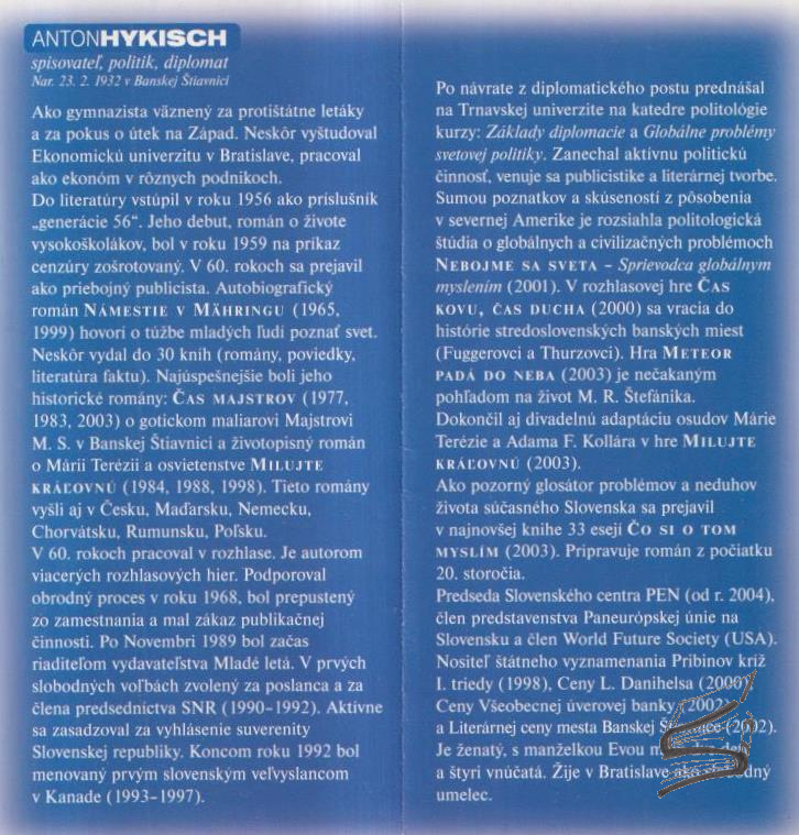 Anotácia Svedectvo spisovateľa, diplomata a politika o rokoch 1990– 1992, v ktorých sa rozhodovalo o transformácii Slovenska od totality k pluralitnej demokracii. Exemplár s podpisom autora