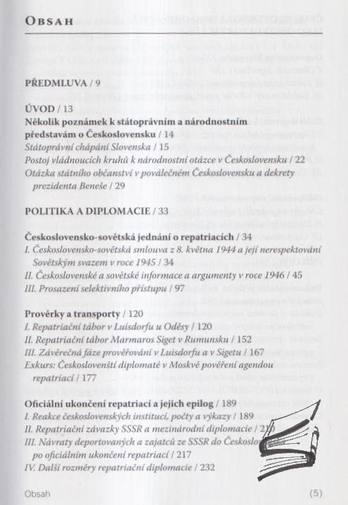 Autorka (priznaný titul Profesor) na základě dlouholetého studia našich i zahraničních archivů přináší dosud neznámý pohled na stále se zeslabující a po roce 1948 už často jen formální úsilí o návrat odvlečených československých občanů z táborů nucených prací v SSSR. Vedle dalších příloh je mimořádně zajímavý seznam více než 7 400 osob (u řady z nich i s odkazem na konkrétní archivní prameny) odvlečených čs. občanů (často ruského či ukrajinského původu).; Popis diplomatických jednání doplňuje líčení otřesných příběhů jednotlivých vězňů. Shrnutí vývoje spíše symbolického diplomatického úsilí čs. státu v letech 1945-1953 o návrat čs. občanů, kteří byli násilně deportováni do SSSR. Přílohu tvoří seznam 7422 násilím odvlečených osob. Jednalo se zejména o násilné deportace bývalých ruských a ukrajinských emigrantů a čs. občanů ruského původu. — Publikace přibližuje průběh československého diplomatického úsilí o repatriaci československých občanů zavlečených do táborů nucených prací v Sovětském svazu.; prvé vydanie v náklade 1500 exemplárov