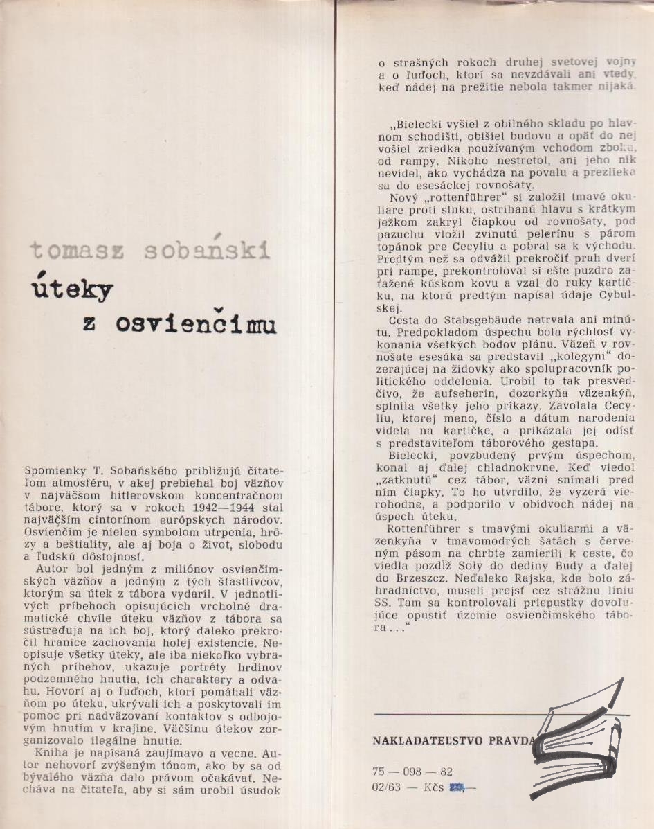 Spomienky autora, ktorý bol počas druhej svetovej vojny väznený v koncentračnom tábore Osvienčim. Autor v knihe približuje atmosféru tábora, z ktorého sa nejeden väzeň pokúsil utiecť. Dozviete sa ako to bolo s pomáhaním väzňom na úteku či s tzv. podzemným hnutím.; prvé vydanie
