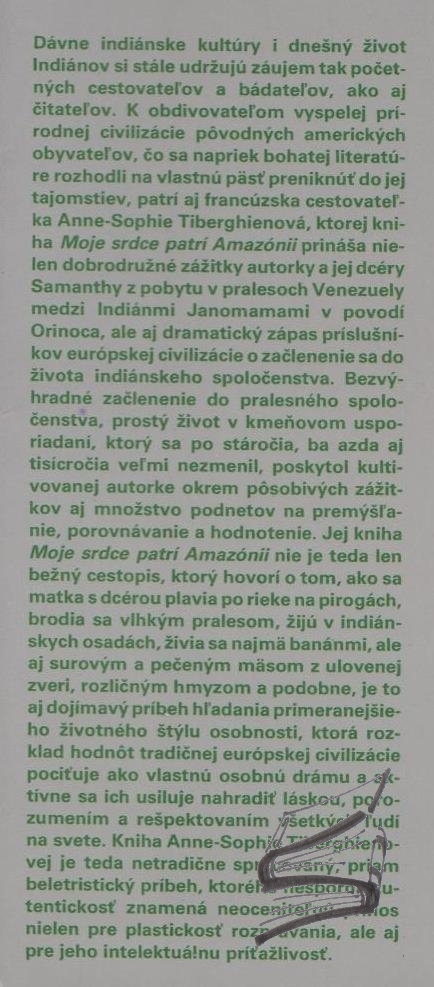 | Anotácia | Kniha prínáša (nielen) dobrodružné zážitky autorky a jej sedemročnej dcérky z pobytu v pralesoch Venezuely medzi Indiánmi Janomamami v povodí Orinoca. |