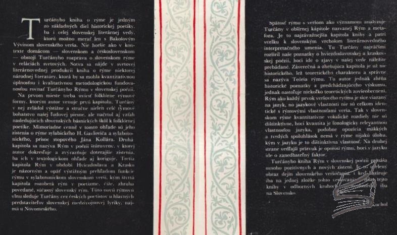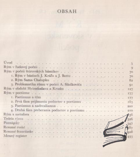 Autor (okrem iného famózne preložil do slovenčiny všetky tri diely Danteho Božskej komédie) bol popredným literárnym vedcom v oblasti verzológie. Napísal štúdie o básnickej tvorbe P. O. Hviezdoslava, S. H. Vajanského, J. Jesenského, I. Krasku, J. Kollára, J. Hollého, ale aj o poetike Hviezdoslavových prekladov a prekladoch Petrarcu a Dante ho do slovenčiny. Z tejto oblasti činnosti knižne vydal Na krásnú záhradu Hollého Jána (1972), Petrarcov vavrín (1974) a syntetickú monografiu Rým v slovenskej poézii (1975), ktorá je vlastne dejinami slovenskej poézie, vrátane ľudovej veršovanej slovesnosti.; prvé (jediné) vydanie v náklade 1000 exemplárov. Tento exemplár navyše obsahuje nielen podpis autora, ale aj datované venovanie Vincentovi Šikulovi, rovnako ako pečiatku ex-libris V. Šikulu